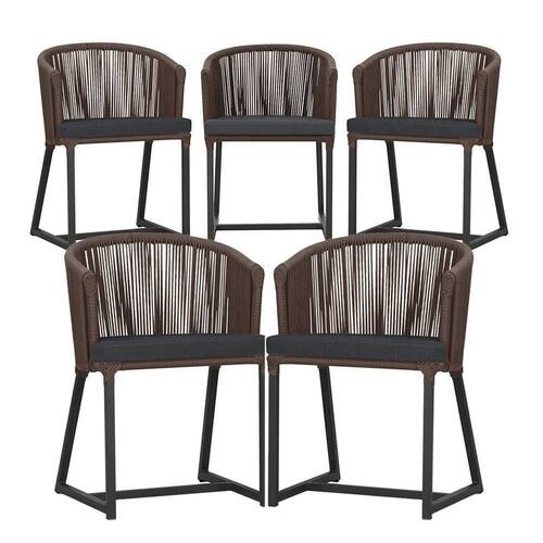5 Cadeiras De Jantar Noronha Preta Corda Náutica E11 Trama Marrom