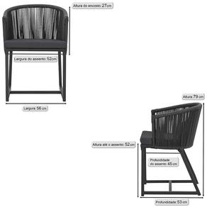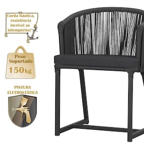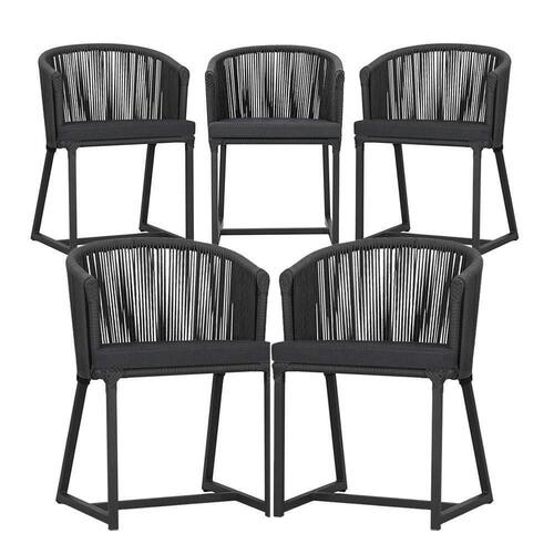 5 Cadeiras De Jantar Noronha Preta Corda Náutica E11 Trama Preto
