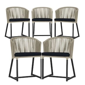 5 Cadeiras De Jantar Noronha Preta Corda Náutica E12 Trama Rami