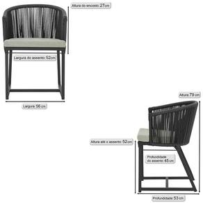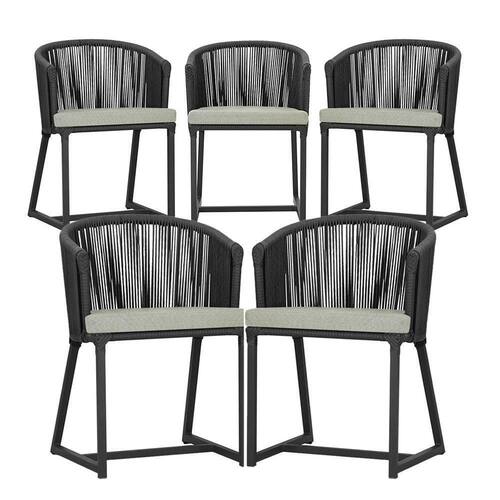 5 Cadeiras De Jantar Noronha Preta Corda Náutica E3 Trama Preto