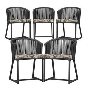 5 Cadeiras De Jantar Noronha Preta Corda Náutica E6 Trama Preto