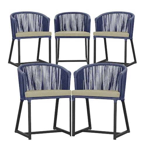 5 Cadeiras De Jantar Noronha Preta Corda Náutica E7 Trama Azul