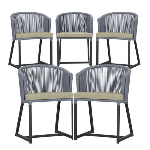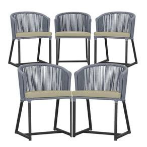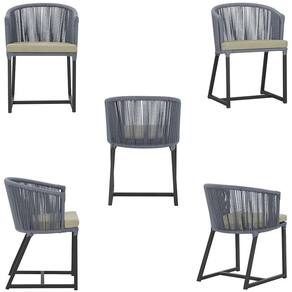 5 Cadeiras De Jantar Noronha Preta Corda Náutica E7 Trama Prata