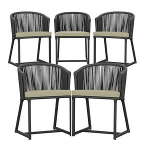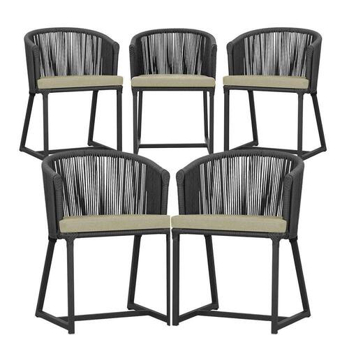 5 Cadeiras De Jantar Noronha Preta Corda Náutica E7 Trama Preto