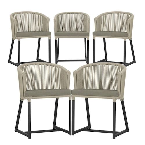 5 Cadeiras De Jantar Noronha Preta Corda Náutica E8 Trama Rami