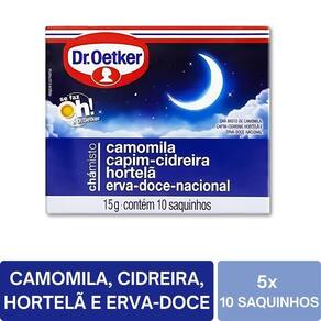 Chá Dr Oetker Camomila Cidreira Hortelã Erva-Doce Kit 5 Caixas Uma combinação de ervas para relaxamento e bem-estar
