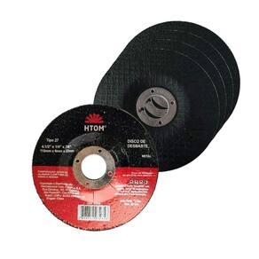 - Marca: HTOM - Referência: HTOM-40565 - Kit com 5 discos - Diâmetro: 115mm 4-1/2 - Espessura: 6mm 1/4 - Furo: 22mm 7/8 - Disco com rebaixo - Disco para desbaste em metal, uso em esmerilhadeiras - Elevada capacidade de desbaste com uma vida útil muito longa - Corpo reforçado com malhas de fibra de vidro - Rotação máxima: 13.300 Marca: Não Informado