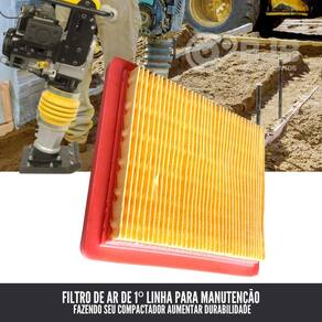 Desempenho Otimizado: Mantém o motor do seu compactador de solo funcionando com máxima eficiência. Proteção Avançada: Filtra eficazmente poeira, sujeira e detritos, prolongando a vida útil do motor. Fácil Instalação: Design simples e compatível com uma variedade de modelos de compactadores.