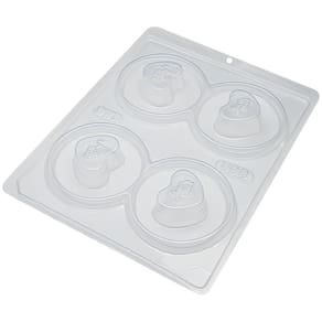 Forma: Com 04 quatro cavidades. Peso médio: 25g. Peso casquinha: 7g. Conjunto composto por 03 três partes, são duas formas de acetato com uma forma de silicone entre elas, permitindo que você faça bombons sem ter que fazer diversas camadas de chocolate.