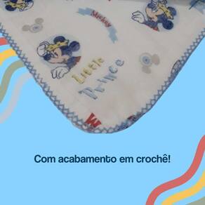 Seu tamanho é excelente, pois possibilita inúmeras utilizações como: fraldinha para cochilar, de ombro, para proteger no bebê conforto ou carrinho, para forrar qualquer superfície quando necessário, entre outros. Possui estampas lindas, delicadas e alegres.