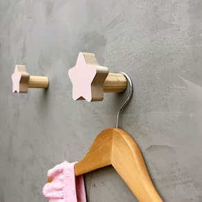 A face vai colada com super cola e acaba sendo apenas decorativa, pois é o suporte quem recebe o esforço, suportando até 5 Kg. Anúncio referênte à 5 unidades. Modelo: Estrela Tamanho da face: 5,0cm X 5,0cm; Material: MDF laminado 15mm melamínico | borda cru Cor: Rosa, Azul, Branco e Cinza