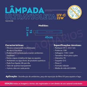 Nossa lâmpada tubular germicida UV foi desenvolvida com tecnologia de ponta para garantir a mais alta qualidade e eficiência em desinfecção, é a escolha ideal para garantir um ambiente livre de germes e uma água cristalina para seu aquário ou lago.