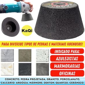 5 Lixas Grão 4 Pol. 100mm Diamantada + 1 Rebolo Cônico 45 Graus + 1 Disco Prato + 1 Pino M14 KaQi Kit 5 Lixas Diamantadas Disco 4 Polegadas 100mm KaQi + 1 Rebolo Grão 120 Copo Cônico 45 Graus 4 Polegadas M14 Forcety. + 1 Suporte Prato Disco 100mm M14 KaQi + 1 Pino Adaptador Multiuso Rosca Universal M14 KaQi. Para Desbastes, Polimentos, Acabamentos, Boleamentos, Lixamentos a Seco e Úmido. Ideal para profissionais e entusiastas de reformas e construção. Transforme o acabamento das suas superfícies com o Kit 5 Lixas Grão 4 Pol. 100mm Diamantada + 1 Rebolo Cônico 45 Graus + 1 Disco Prato + 1 Pino M14 Desenvolvido para oferecer o melhor polimento e acabamento, é perfeito para quem busca resultados profissionais, tanto em pedras como granitos, mármores, cerâmicas, quanto ardósia, calcário, dekton, quartzo, porcelanato, pedra projetada, concreto, nanoglass, super nano, vidro e muito mais. Seu lixamento pode ser a seco e a úmido, o que proporciona um processo mais rápido, sem gerar calor excessivo. Assim, é possível garantir um resultado sem manchas ou falhas, e ainda favorece um efeito brilho d'água incrível O Rebolo Copo Cônico 10x5cm Grão 120 Forcety é ideal para desbastes, retificações, boleamentos e acabamentos. Projetado para oferecer eficiência, durabilidade, confiabilidade e resultados excepcionais, é perfeito para profissionais e entusiastas de reformas e construções. Não à toa, é o rebolo número 1 das marmorarias, azulejistas e oficinas de todo Brasil O Disco 100mm e o pino adaptador M14 podem ser utilizados em conjunto com as lixas e com o rebolo. Com sistema de gruda e desgruda fácil, podem utilizadas em lixadeiras, esmerilhadeiras, politrizes, furadeiras, parafusadeiras. Permite, assim, ampliar a gama de usos do kit. Principais características: 1. Durabilidade extra, alta resistência ao desgaste, longa vida útil e desempenho, além de excelente performance em diversos tipos de materiais. 2. Acabamento impecável no desbaste e polimento de superfícies de pedra, mármore, calcário, ardósia, porcelanato e outros, sem deixar manchas ou marcas indesejadas. Pode ser trabalhada em superfícies claras ou escuras. Oferece uma remoção eficiente de material e um acabamento uniforme. 3. Versatilidade no uso com diversas ferramentas, já que pode ser Utilizado em esmerilhadeiras, lixadeiras, politrizes e furadeiras elétricas. 4. Eficiência de montagem, uma vez que possui sistema de fixação rápido. Basta encostar a lixa no suporte do disco para grudar, e, para remover, é só puxar na direção contrária. Conteúdo da embalagem: 5 Lixas DÁgua 4 Pol. 100mm Disco Diamantado KaQi GRÃO. + 1 Rebolo Grão 120 Copo Cônico 45 Graus 4 Polegadas M14 Forcety. + 1 Suporte Prato Disco 100mm M14 KaQi + 1 Pino Adaptador Multiuso Rosca Universal M14 KaQi. Especificações Lixas: Diâmetro: 100mm 4 Polegadas . Furo central: 1,3cm diâmetro. Espessura 1 unidade: 0,4cm. Maleabilidade: flexível. Lixamentos: seco e úmido. RPM: ideal entre 3000 a 5000 rotações por minuto. Material da lixa: diamante sintético industrial e resina premium. Costado: tipo vellcro. Fácil de fixar e remover. Especificações Rebolo: Trabalho: a seco ou refrigerado com água. Diâmetro: 4 Polegadas 100mm 10,16cm x altura 5,08cm. Velocidade: 9023RPM. Rosca: M14. Material: Carbeto de Silício SiC com diamantes. Norma ABNT NBR 15230. Especificações Prato Suporte: Diâmetro do disco: 100mm 4 Polegadas . Modelo do disco: M14 com superfície tipo vellcro. RPM: até 12000. Rosca: padrão M14 14mm . Especificações Pino Adaptador M14: Para Furadeira Parafusadeiras, Politrizes, Lixadeiras e Esmerilhadeiras. Fixa em discos pratos M14 para uso com lixas, boinas, espumas de polir, entre outros acessórios. Rosca: M14 14mm . Pino largura: 8mm. Altura total: 4,4cm.