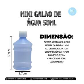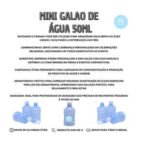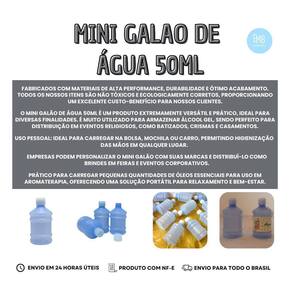 Mini Galão de Água 50ml O Mini Galão de Água 50ml é um produto extremamente versátil e prático, ideal para diversas finalidades. É muito utilizado para armazenar álcool gel, sendo perfeito para distribuição em eventos religiosos, como batizados, crismas e casamentos. Também é uma excelente opção para acompanha promocionais, campanhas de marketing e eventos corporativos, agregando valor e cuidado aos presentes. Este mini galão é ideal para o armazenamento de óleos essenciais e água benta, permitindo que os usuários tenham sempre à mão uma pequena porção de itens essenciais para o dia a dia ou práticas religiosas. Contém: 5 unidades completa Galão + Tampa Especificações do Galão: Altura do frasco: 6,7 cm Altura da tampa: 1,1 cm Altura com tampa fechada: 7 cm Circunferência: 11,7 cm Diâmetro: 3,7 cm Capacidade: 50 ml Na EMBANET, nossos produtos são fabricados com materiais de alta performance, durabilidade e ótimo acabamento. Todos os nossos itens são não tóxicos e ecologicamente corretos, proporcionando um excelente custo-benefício para nossos clientes. A qualidade e a satisfação dos nossos clientes são nossas prioridades. Marca: Não Informado Ean: 7794389960590