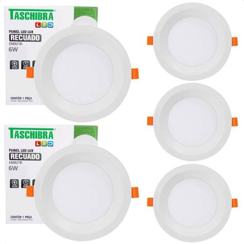 Kit 5 Painel de Led Redondo Embutir Recuado 6W Bivolt Taschibra 6500K Frio Características Gerais do Produto: Dimensões AxLxP CM : 1,6 x 9 x 9 Formato: Redondo Nicho do recorte CM : 7,5 X 7,5 Cor da luz: 6500K Frio Produzido em: Plástico de Engenharia, Anti-UV, Driver Onboard, Placa Interna em Alumínio e Componentes Eletrônicos Voltagem: Autovolt em 110v e 220V Alimentação: Energia elétrica Cor acabamento: Branco Potência: 6W Fluxo luminoso: 360 Lumens IRC: 80 Ângulo de abertura: 120 : 1 ano junto ao fabricante Aplicação: Embutir Vida útil: 20.000 horas Acompanha lâmpada: Não necessita, LED já integrado Grau de proteção: IP20 Ajuste de intensidade Dimerizar : Não Acompanha o produto: 05 Painel Led Completo : 1 ano junto ao fabricante Marca: Não Informado