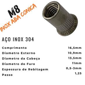 Porca Rebite Rosca M8 Inox Arrebite Aba Plana Conica 5 Pçs