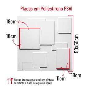 5 Placas Revestimento 3d 50cmx50cm Parede Kit Teto Quadratto Quantidade do anúncio: 5 Placas Modelos: Quadratto Todas as placas são da cor branca As placas são de poliestireno PSAI plástico Tamanho: 50x50cm exceto modelos piramidal e prisma 48x 48cm Espessura: 0,5 mm