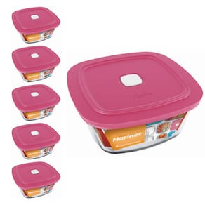 Pote De Vidro Quadrado Com Tampa Marinex 500ml 5 unidades