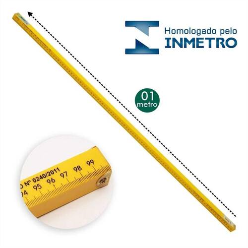 - Metro para balcão - Cor: Amarelo - Dimensões em CM: 2 x 2 x 100Cm - Peso: 200 gramas - Marca: PlastMetro - Aprovado pelo INMETRO, sob Portaria nº0240/2011 - Vendidas em unidade - Ref. 1760