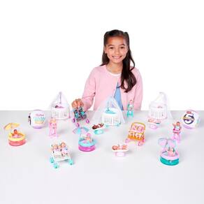 Cada cápsula esconde um mini bebê adorável, com expressões e roupinhas únicas, além de acessórios maiores como bercinhos, banheiras, cadeiras de alimentação, mamadeiras, pratinhos e muito mais. São itens perfeitos para montar um cenário completo de cuidados e carinho, estimulando a imaginação e o faz de conta.