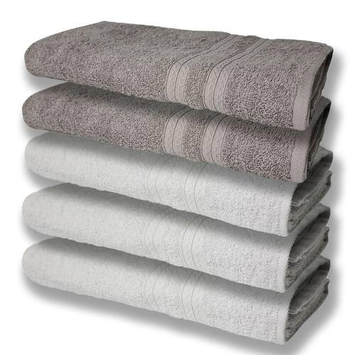 5 Toalhas Super Felpudas Grande e Grossa Algodão 80x150 Branco+Cinza