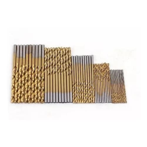 Especificações: 50 brocas de aço de alta velocidade revestido em titânio 100% novas e com alta qualidade Brocas para madeira, plástico e alumínio Ideal para diy, casa e construções em geral/engenharia Material: aço de alta velocidade de aço inoxidável revestida em titânio