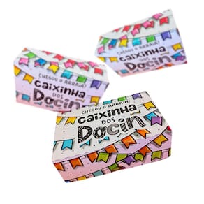 Caixa Festa Junina para Doces e Mimos - 50 Unidades Deixe sua Festa Junina ainda mais especial com as Caixas Kibunitinho Perfeitas para docinhos, lembrancinhas, mimos e muito mais, nossas caixas versáteis acomodam até 6 doces cada. Com design exclusivo e impressão de alta qualidade em papel offset 240g fosco, elas dão um toque de charme e alegria à sua festa. O kit inclui: 50 caixas desmontadas, sendo 10 unidades de cada modelo Dimensões: 12cm comprimento x 8cm largura x 4cm altura Ideal para: Docinhos Bombons Trufas Pão de Cosméticos Bijuterias Pequenos presentes Surpreenda seus convidados com embalagens criativas e cheias de personalidade
