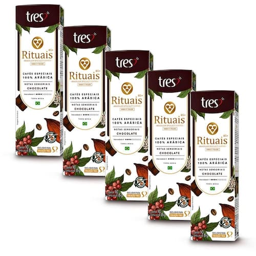 Notas de chocolate ao leite: Sabor suave e adocicado, que encanta o paladar. Café 100% arábica: Grãos selecionados para uma experiência premium. Torra média e intensidade 4: Café equilibrado e ideal para qualquer momento do dia. Compatibilidade com TRES: Perfeito para sua rotina de café especial com um toque gourmet.