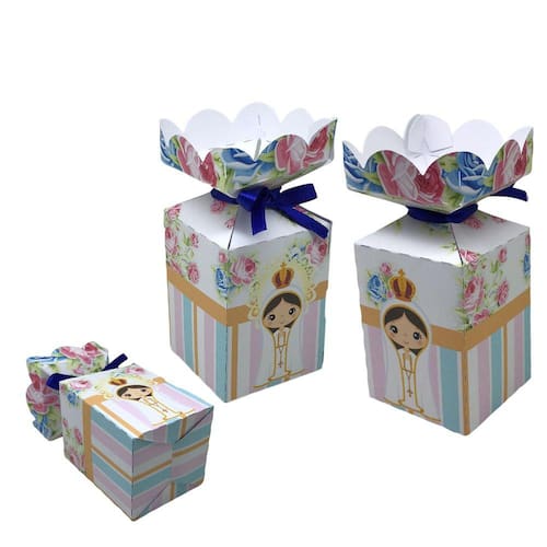 Comemore com fé e alegria com o nosso Kit Festa Nossa Senhora de Fátima! Monte uma festa inesquecível, com produtos de qualidade, elegância e economia. Escolha os itens que mais lhe agradam e adicione-os ao seu carrinho.Escolha entre os modelos abaixo, cada unidade corresponde a quantidade informada no titulo do anuncio:Caixas Milk para lembrancinhas (14x6x6cm, área útil 8x6x6cm)Caixas Meia Bala para doces ou mimos (14x6x6cm, área útil 7x6x6cm)Maletinhas de Papel para surpresas especiais (11x8x4cm, área útil: 6,5x8x4cm)Cones de Papel para guloseimas (14x6x6cm)Caixas Bala para presentear seus convidados (14x5x5cm, área útil 5x5cm)Nossos produtos são produzidos com atenção aos detalhes, feitos em papel off set 240g de acabamento fosco para assegurar a excelência. São enviados desmontados para prevenir danos no transporte, mas não se preocupe, a montagem é muito simples! E se precisar de qualquer auxílio, estaremos sempre à disposição para ajudar.Conquiste seus convidados com estilo e devoção. Adquira já o seu Kit Festa Nossa Senhora de Fátima e deixe seu evento ainda mais marcante! Marca: KIBUNITINHO