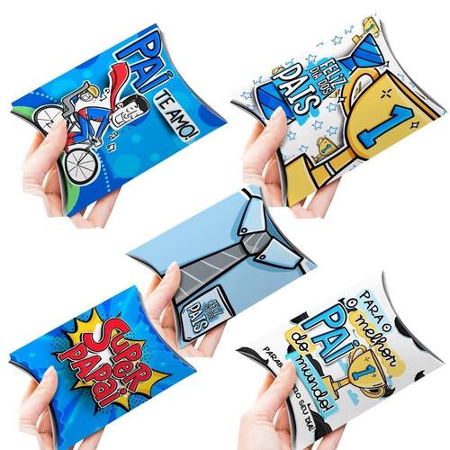 Porta Bombom Dia dos Pais Caixa Almofada Papel Offset 240g DIY Surpreenda seus clientes ou colaboradores com um mimo especial neste Dia dos Pais Nosso kit com 50 porta bombons em formato de caixa almofada é a lembrancinha perfeita para demonstrar carinho e atenção. Feitas em papel offset 240g fosco, elas são resistentes e elegantes, ideais para presentear com um toque de sofisticação. A montagem é fácil e rápida, basta seguir nosso vídeo tutorial e usar cola para fixar as peças. Material de qualidade: Papel offset resistente e durável. Design elegante: Caixas almofada com estampa temática para o Dia dos Pais. Fácil montagem: Com vídeo tutorial para auxiliar no processo. Perguntas e Respostas: P: Os bombons estão inclusos no kit R: Não, o kit inclui apenas as caixas porta bombom. Os bombons não estão inclusos. P: É possível personalizar as caixas com o nome da empresa R: Nossas caixas possuem um design padrão com tema Dia dos Pais, ideal para presentear de forma rápida e prática. P: As caixas são difíceis de montar R: A montagem é muito fácil Enviamos um vídeo tutorial com o passo a passo para te ajudar. Basta ter cola em mãos e seguir as instruções. Garanta já o seu kit e deixe o Dia dos Pais ainda mais especial Marca: Kibunitinho Ean: 7905446486407