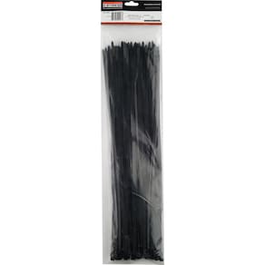 Abraçadeira fabricada em nylon resistente com acabamento na cor preta. Indicado para o uso doméstico e industrial, para a fixação diversa em cabos elétricos, veículos, bicicletas, etc.