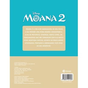 Moana está de volta para uma nova e emocionante jornada pelos mares! Agora, como navegadora experiente e líder corajosa, Moana recebe uma importante missão: encontrar a misteriosa ilha de Motufetú. Ao longo do caminho, ela reencontra velhos amigos e conhece novos companheiros que vão ajudá-la nesta grande aventura! Conheça os personagens desta emocionante jornada e depois, divirta-se resolvendo atividades, pintando e brincando com mais de 500 adesivos! O livro possui: 7 páginas coloridas que apresentam os personagens do novo filme 5 páginas coloridas com atividades para você se divertir! 4 páginas de adesivos incríveis para colar onde quiser! 24 páginas com desenhos para colorir! Um livro cheio de coragem, magia e diversão — ideal para fãs da Moana e para todas as crianças que amam aventuras nos oceanos!