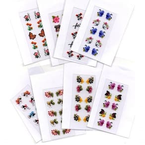 Cada kit vai com 50 cartelas com 10 desenhos cada cartela totalizando 500 adesivos para 500 unhas
