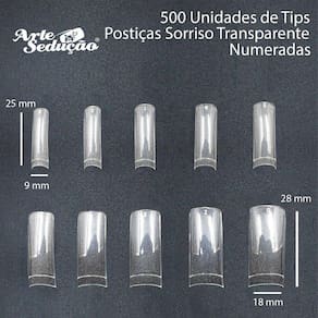 Marca: Arte Sedução Modelo: Sorriso Tipo: Unha Postiça Cor: Transparente Tamanho: Diversos Quantidade: 500 Unidades