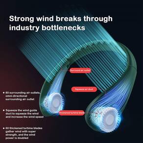 1. 80 saídas de ar: O ventilador de pescoço portátil é projetado com uma forma única de ventilação de ar de 80, ângulo de fluxo de ar ajustável de 360 graus, brisa fresca de 360 ° no pescoço e no rosto, não diretamente no rosto. 60 pás de turbina tornam o vento forte e confortável, esfriar rapidamente em 3 segundos, não sugar ou puxar o cabelo. Afaste o calor enquanto protege a sua saúde. 2. Baixo ruído e confortável: O ventilador de pescoço portátil silencioso tem operação de baixo ruído, não mais do que 40 decibéis, mesmo no trabalho / estudo / trabalho, você pode usá-lo normalmente sem perturbar os outros. Feito de ABS + PC ecologicamente correto. Tudo isso torna o mini ventilador mais suave, duradouro e silencioso. 3. 3 velocidades e bateria de grande capacidade de 5000 mAh: ventilador de pescoço portátil Com o botão liga/desliga na tela sensível ao toque, você pode ajustar a velocidade do ventilador USB adequado, mais inteligente e conveniente. Uma carga completa leva apenas 3-4 horas. O ventilador recarregável fornece 4-16 horas de uso duradouro (dependendo de diferentes velocidades). Isso significa que você pode ficar fresco o dia todo sem se preocupar com quedas de energia. 4. Dobrado, portátil, elegante: O ventilador dobrável do ventilador de pescoço portátil é muito pequeno, fácil de colocar na bolsa e peso super leve, para que você não se canse de usá-lo o dia todo. 5. Design de moda: Com o design do pescoço pendurado e o design do fone de ouvido, liberte as mãos e o estilo da moda faz você parecer legal.