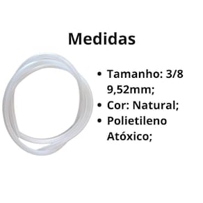 Mangueira Atóxica de 3/8 9,52mm específica para o purificador de água Soft Everest ou demais purificadores que utilizam mangueira 3/8. Tamanho da mangueira: 5 metros - Dados técnicos: Dimensões do Produto: 9,52x1,6 3/8 mm Temperatura de Operação: 1 a 40 C Pressão de Operação: 29 a 392 kPa Composição: Polietileno Atóxico Cor: Transparente/Natural ------------------------------------------------------------------ Todas as compras serão postadas em até 24 horas úteis. Estamos à disposição para tirar todas as suas dúvidas, faça-nos uma pergunta Boas compras Filtros COMPANY Marca: Não Informado