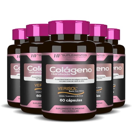 Através deste anúncio, você está adquirindo 5 cinco potes de 5x colágeno hidrolisado verisol hf suplementos 60caps.