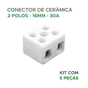 5X Conector Bipolar Cerâmica Cabo 16Mm 30A 250V - Chuveiro