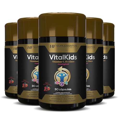 Suplemento alimentar de vitamina c, d, e zinco em cápsulas mastigáveis Pote com 30 cápsulas Ingredientes: óleo de coco, gelatina, óleo de girassol, ascorbato de cálcio, água purificada, amido modificado, , óxido de zinco, colecalciferol, estabilizante carbonato de cálcio, umectante glicerina, glaceante cera de abelha, emulsificante lecitina de girassol, acidulante ácido cítrico, edulcorantes xarope de maltitol, xilitol e sucralose, corantes, carmim e óxido de ferro amarelo, óleo essencial de laranja e aroma idêntico ao natural frutas silvestres Não contém glúten Recomendação de uso: ingerir 01 cápsula ao dia. Através deste anúncio, você está adquirindo 5 cinco potes de 5x vitalkids vitamina c, d zinco 30caps mastigavel hf suplementos. Marca: Não Informado Ean: 7902408366586