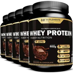 Através deste anúncio, você está adquirindo 5 cinco potes de 5x whey protein power nutrition mousse de chocolate 900g hf suplementos