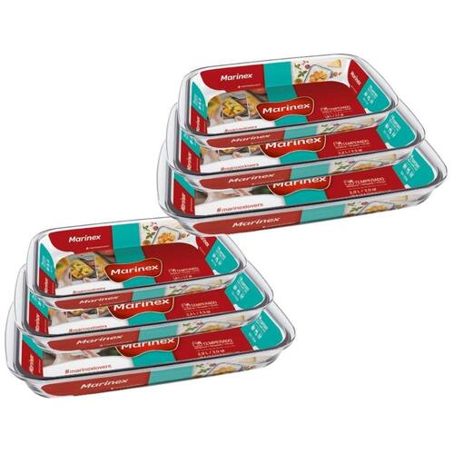6 Assadeiras 2 de cada Tamanho 1,6 Litros, 2,2 Litros e 2,9 Litros Retangular Marinex Nadir Figueiredo