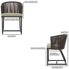 Combinando estilo e resistência, esta cadeira traz o melhor do design contemporâneo em alumínio com micro pintura e acabamento em corda náutica. O estofado impermeável completa o conforto e a funcionalidade, tornando-a ideal para ambientes externos e internos.