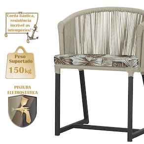 Fotos meramente ilustrativas. Tonalidades podem variar dependendo do monitor. Os objetos que ambientam as Fotos não acompanham o produto. Antes de comprar o seu produto verifique as medidas, o local onde pretende instalar e se necessário contratar o serviço de um profissional qualificado. Produto conhecido como: Cadeira Noronha, Cadeira de alumínio, Corda náutica, Estofado impermeável, Móveis de exterior, Cadeira resistente à água, Design moderno em Cadeira, Cadeira para área externa, Cadeira de jardim, Móveis para varanda, Cadeira durável, Cadeira de alta qualidade, Conforto em Cadeira, Cadeira elegante.