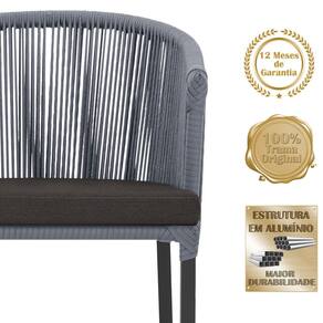 Combinando estilo e resistência, esta cadeira traz o melhor do design contemporâneo em alumínio com micro pintura e acabamento em corda náutica. O estofado impermeável completa o conforto e a funcionalidade, tornando-a ideal para ambientes externos e internos.