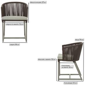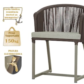 Combinando estilo e resistência, esta cadeira traz o melhor do design contemporâneo em alumínio com micro pintura e acabamento em corda náutica. O estofado impermeável completa o conforto e a funcionalidade, tornando-a ideal para ambientes externos e internos.