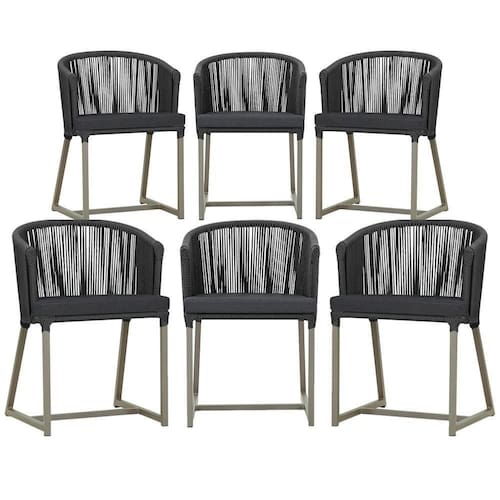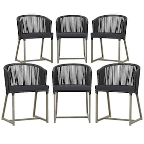 6 Cadeiras De Jantar Noronha Fendi Corda Náutica E11 Trama Preto