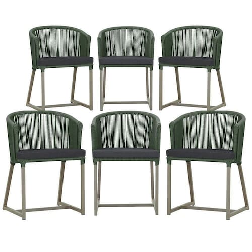 6 Cadeiras De Jantar Noronha Fendi Corda Náutica E11 Trama Verde