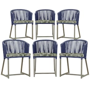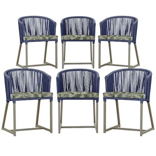 6 Cadeiras De Jantar Noronha Fendi Corda Náutica E5 Trama Azul