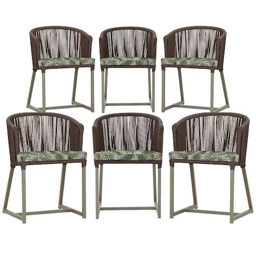 6 Cadeiras De Jantar Noronha Fendi Corda Náutica E5 Trama Marrom