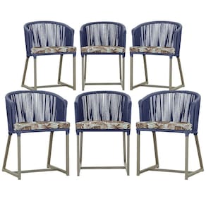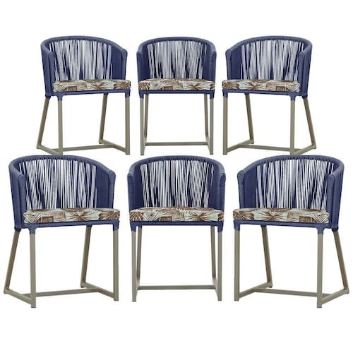 6 Cadeiras De Jantar Noronha Fendi Corda Náutica E6 Trama Azul